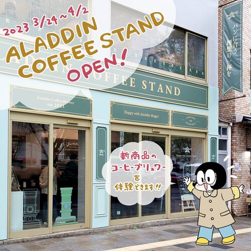 2023年3月24日に発売となった新商品 「アラジン コーヒーブリュワー」を体験できるポップアップストア 「アラジンコーヒースタンド」が開催中! 「パンに合うコーヒーを」 トースターも大人気のアラジンだからこそ、 毎日のパンに欠かせないコーヒー…